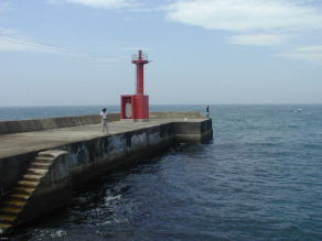 日中はアジやらサビキやら、結構混む。磯 広く足場も良いが、やや高い。