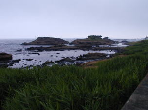 トガリ島、大島方面を見る 沖に見える大島とトガリ島。