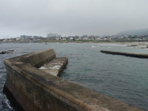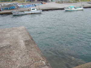 左堤防 この港内側が主なポイントになる。 左堤防先端付近 取材日は底が見えるほど澄んでいて、小魚も見えない。