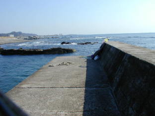 手前の突き出しは土地の年配の釣り人が良く竿を出している。