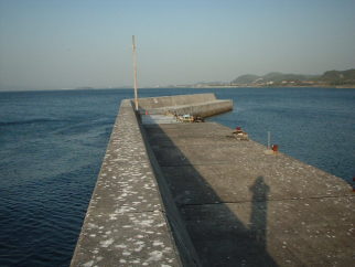 ファミリーフィッシングでも白ギスが釣れる。波佐間堤防 この辺の堤防は大小にかかわらず、同じように”へ”の字だ。