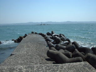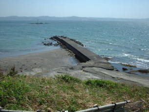 堤防は砂浜に突き出た何の変哲も無い古いもので、