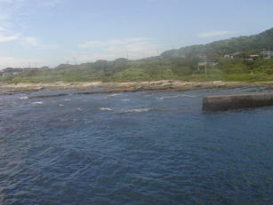 台風等のの濁りが入ればカイズなら結構堅い。右小突堤 小突堤は狭く、危険。 西川名方面 堤防の付け根左方面は西川名に続く房総の磯。