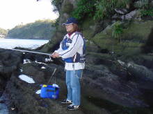 その時の状況は・・・いまいち覚えてません。だって、(((((((°0°;)アワワワって興奮状態だったんだもん。ただ言えるのは釣れたての魚ってずいぶん色が違うんだなって事。メジナがあんなにブル〜できれいな魚とは知りませんでした。それにしても釣りって休む暇ないわねぇ〜投げたらジ〜〜〜〜〜ッ(-_-)とウキの様子をうかがって・・・コマセ投げて・・・