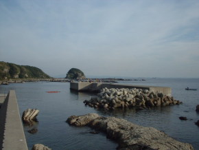 毘沙門漁港から正面にどんと構える堤防。