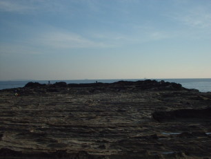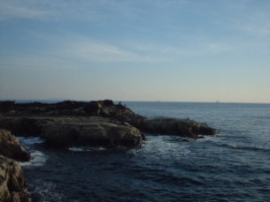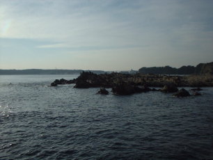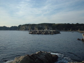 ワンドを2つ越さなければ着きません。観音山下の磯の全景(ヤギ島から望む)