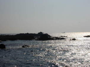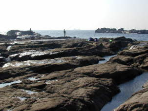 ここはメジナも時折大型が出ます。ベッド島の磯(右がWC下) ここから右方面が通称”便所下”