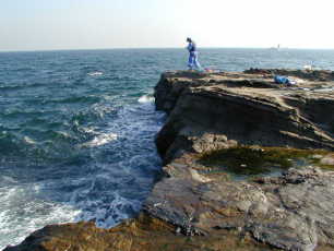 平島の磯(ベット島を望む) 灯台下寄りの場所もやや、波に弱いものの