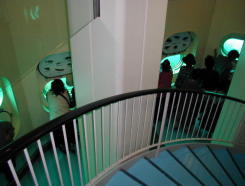 しばし螺旋階段を降りれば、楕円形の窓の並ぶ展望室。